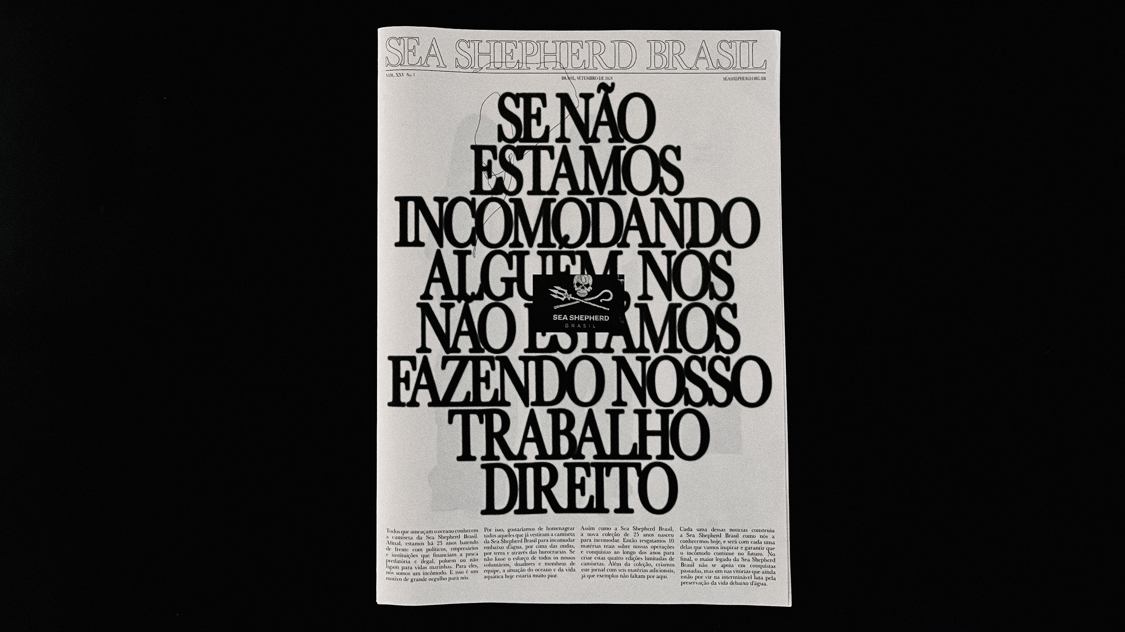 Sea Shepherd Brasil is the fiercest non-profit protecting the Brazilian marine ecosystem, and it just hit 25 years! Over this time, its shirt has become a symbol of the fight against ocean pollution, illegal fishing, and disrespect for environmental laws. To celebrate this milestone, we're using the shirts as a canvas to create a collection that features real news stories about Sea Shepherd's biggest achievements, along with a new edition of a newspaper showcasing them. As Paul Watson, the founder of the NGO, puts it: "If we’re not disturbing people, we’re not doing our job right." The Sea Shepherd, 25 Years of Disturbing Collection is all about celebrating that story, making sure it continues, and of course, keep disturbing.